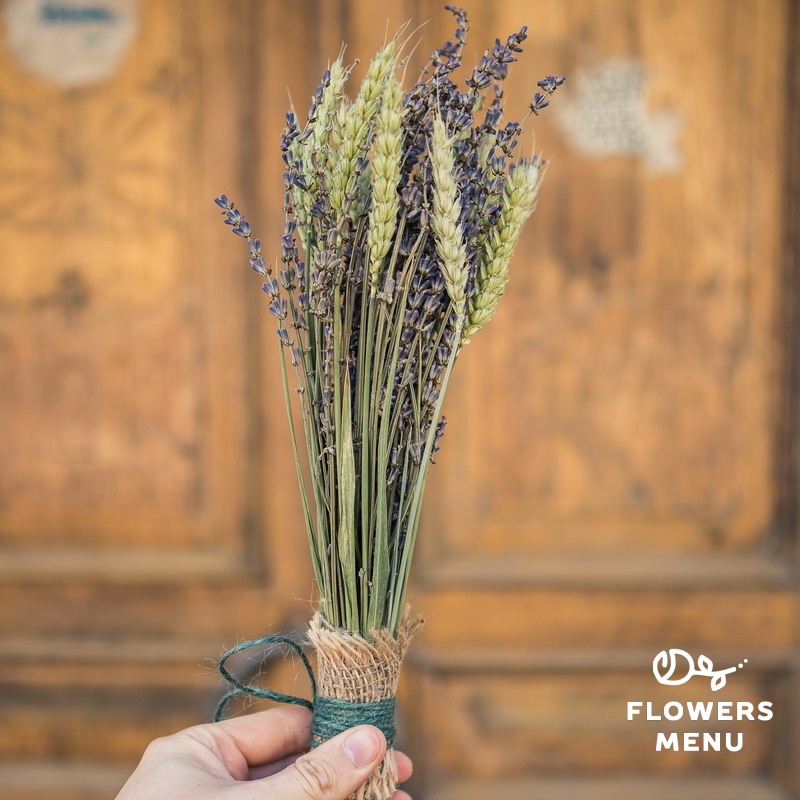 Состав: Лаванда, тритикум Описание: Дуэт благоухающей лаванды с колосками пшеницы очарует любого. Этот букет будет долго напоминать о чем-то приятном.