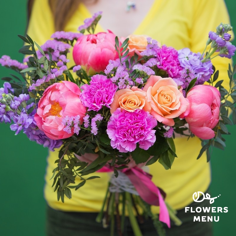 Состав: Гвоздики, маттиолы, пионы, розы Мисс Пигги, статице, фисташка Описание: Насыщенная цветовая гамма передает Ваши яркие эмоции и переживания. Устоять перед таким букетом невозможно. Успех Вам гарантирован.