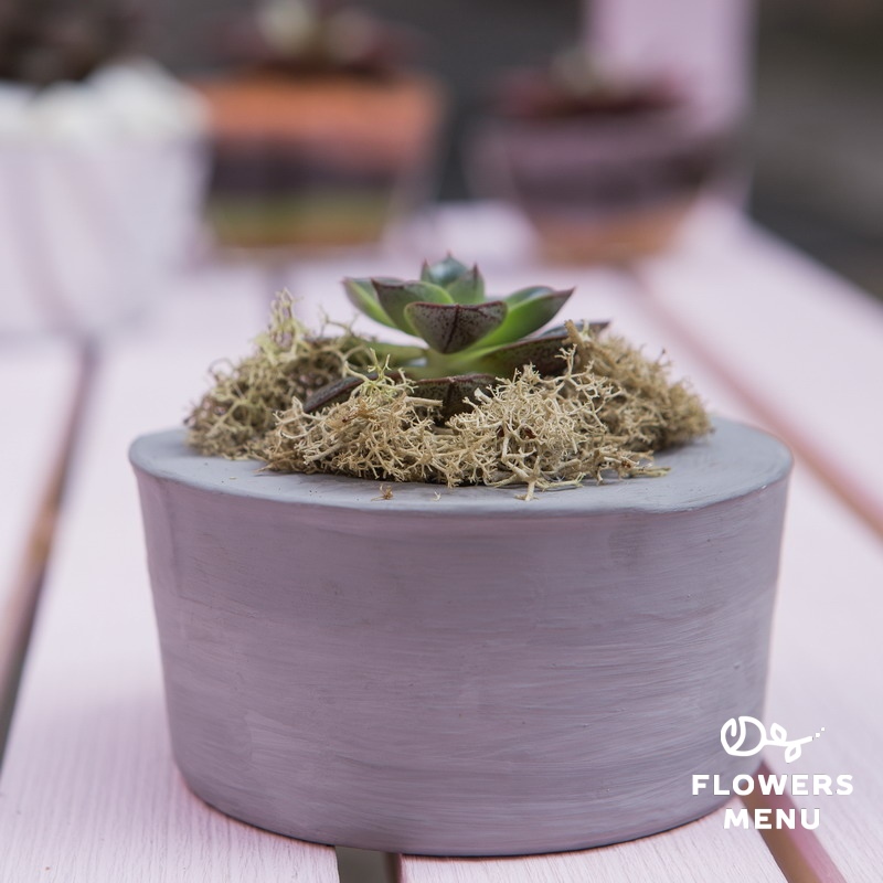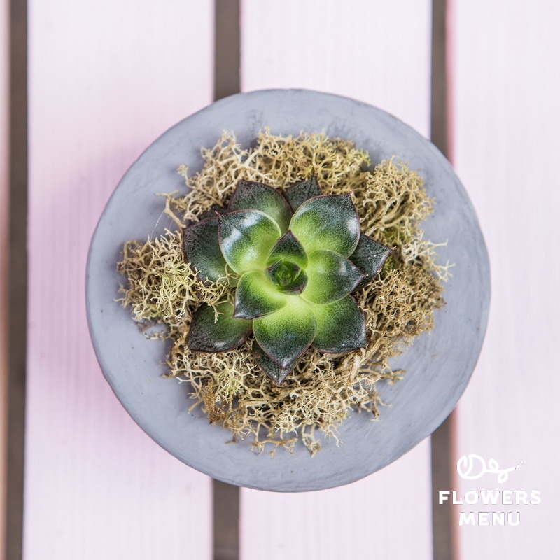 Состав: Суккулент Эхеверия, грунт, мох, кашпо из гипса d=10 см, h= 7 см