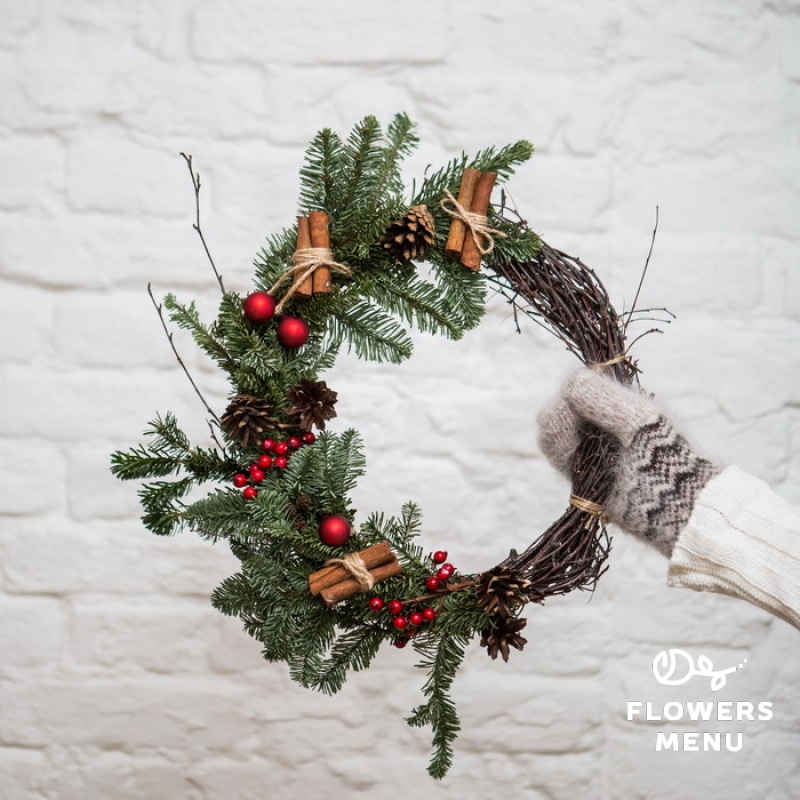 Состав: Каркас из веток березы, нобилис (лапник), сосновые шишки, палочки корицы, искуственные ягоды, декоративные вставки Описание: Рождественский венок - креативное решение для создания волшебной и уютной атмосферы Нового года и Рождества. Ароматы корицы и хвои повысят настроение и зарядят энергией на долгие праздники. D= 20-25 cм